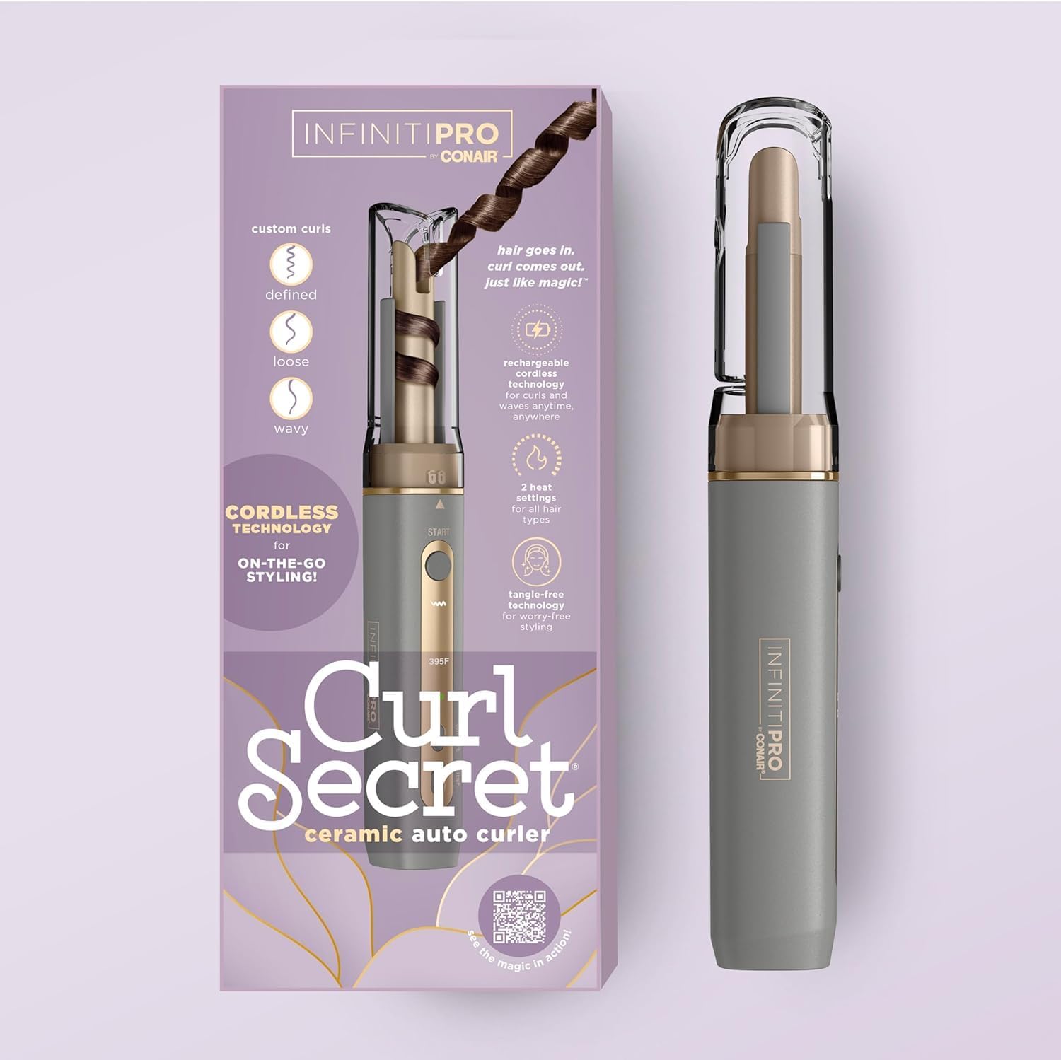 Get perfect curls on the go with the InfinitiPRO by Conair® Curl Secret® Mini Cordless Auto Curler. Featuring 2 temperature settings and customizable curl types, it's the effortless way to touch up your curls or get classic styles anytime, anywhere. The mini design with cordless technology makes this auto curler a must for on-the-go styling. Read more