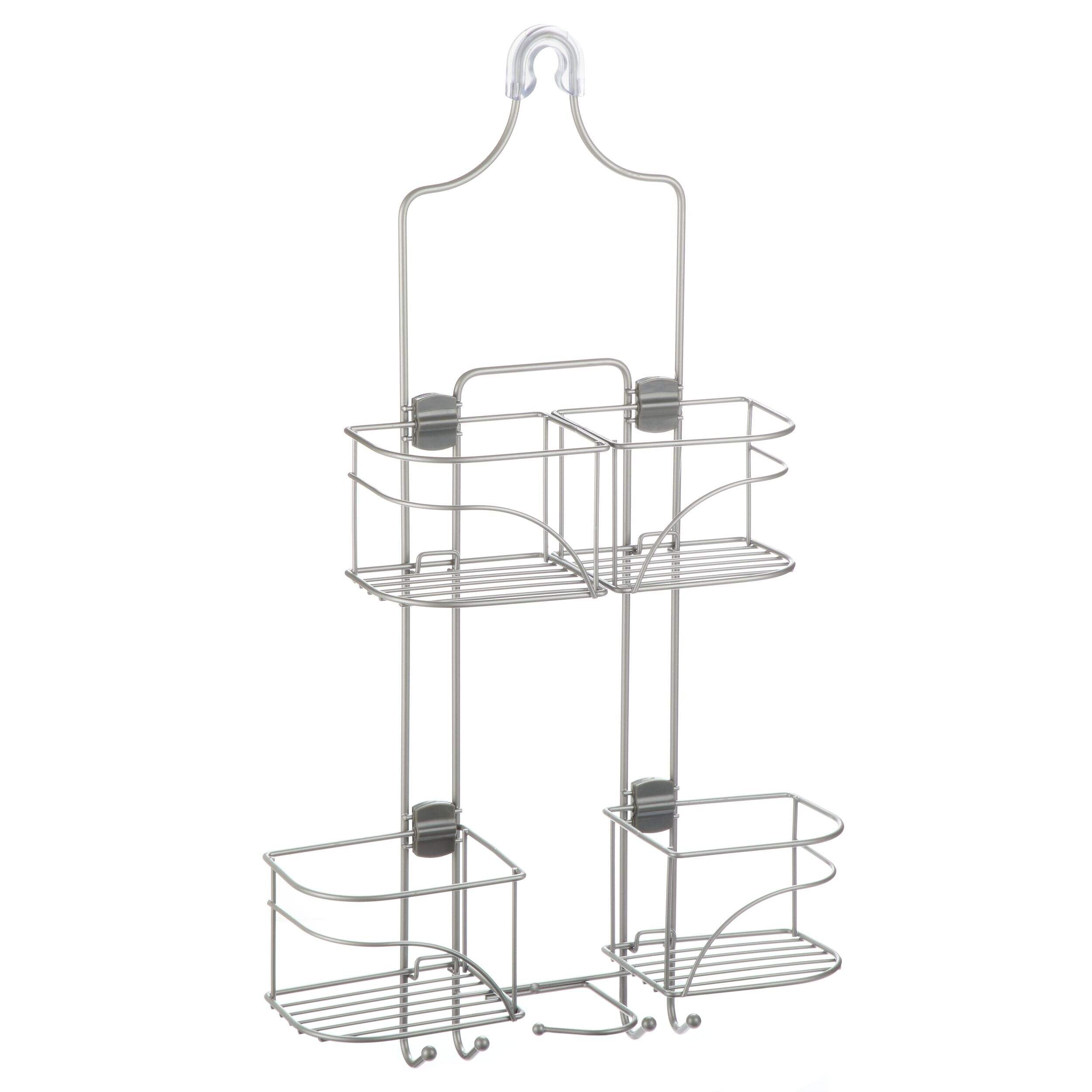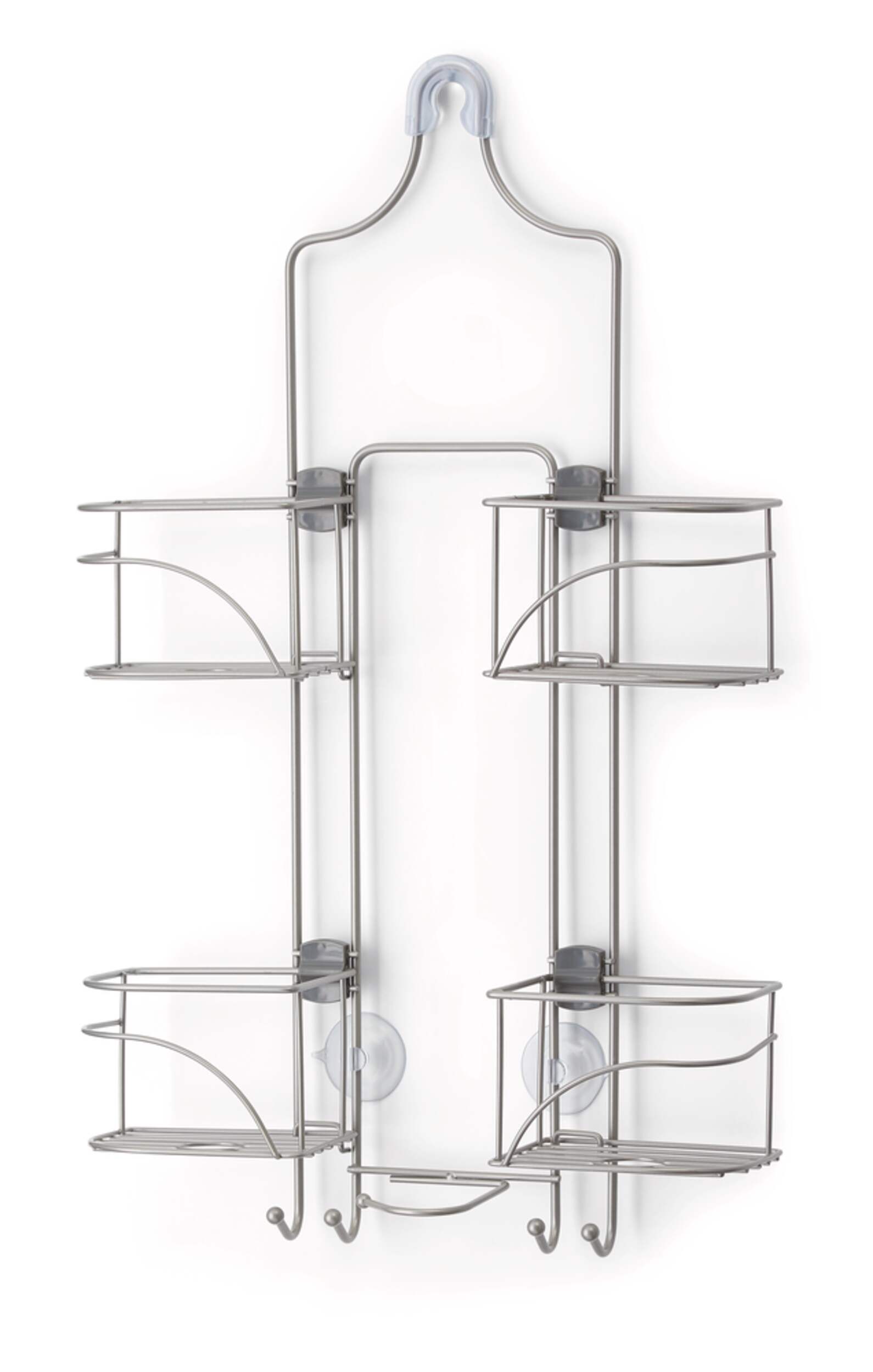 The For Living Expandable Shower Caddy is the ultimate shower accessory. You can easily store all your bath products with the deep basket heights so no bottles are abandoned in the soggy shower corner. The baskets of the expanding stainless steel shower caddy slide apart to accommodate handheld and massage showerheads without sacrificing storage space. The sleek satin nickel finish perfectly complements shower hardware, and built-in suction cups hold the non-slip shower caddy in place against the wall.