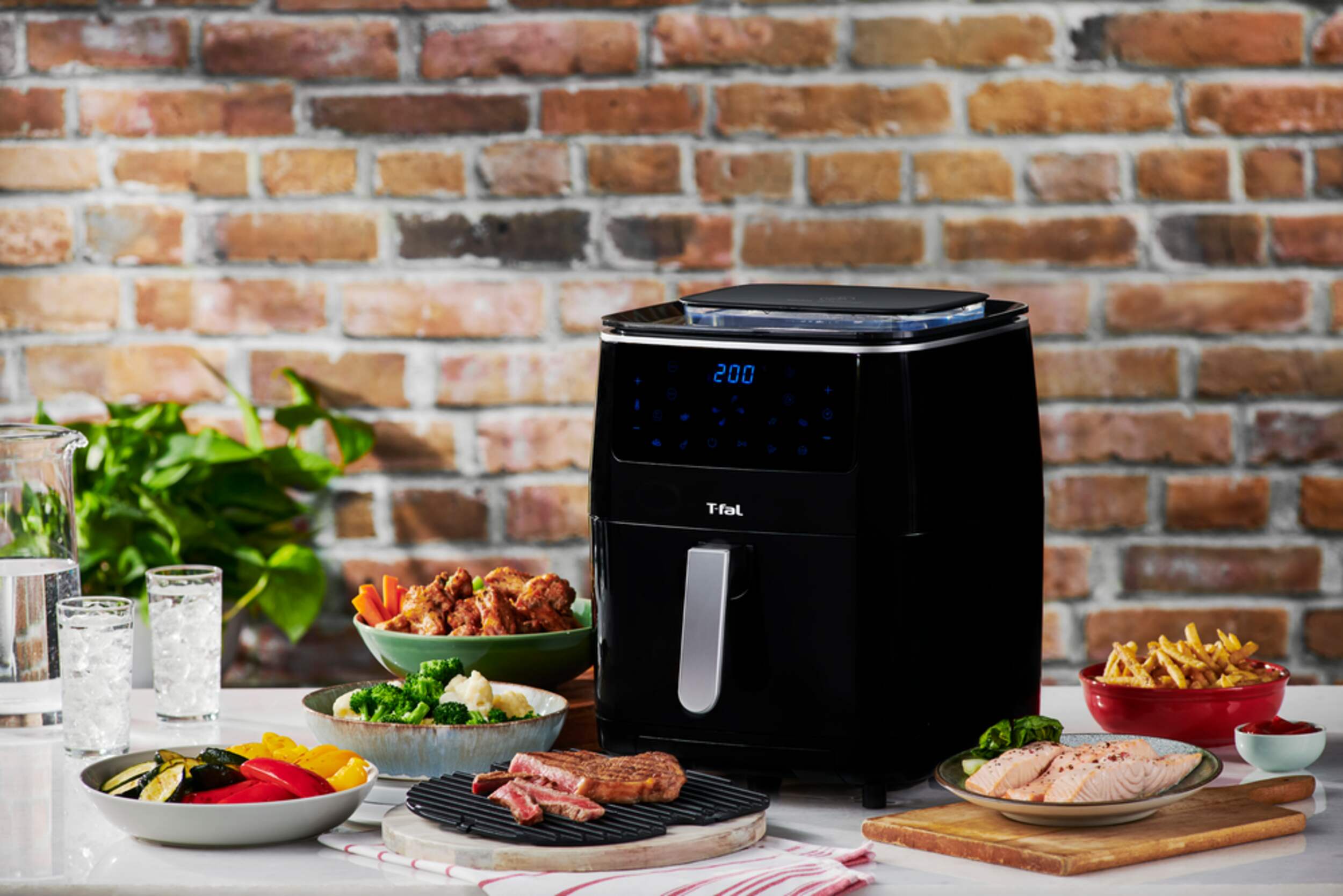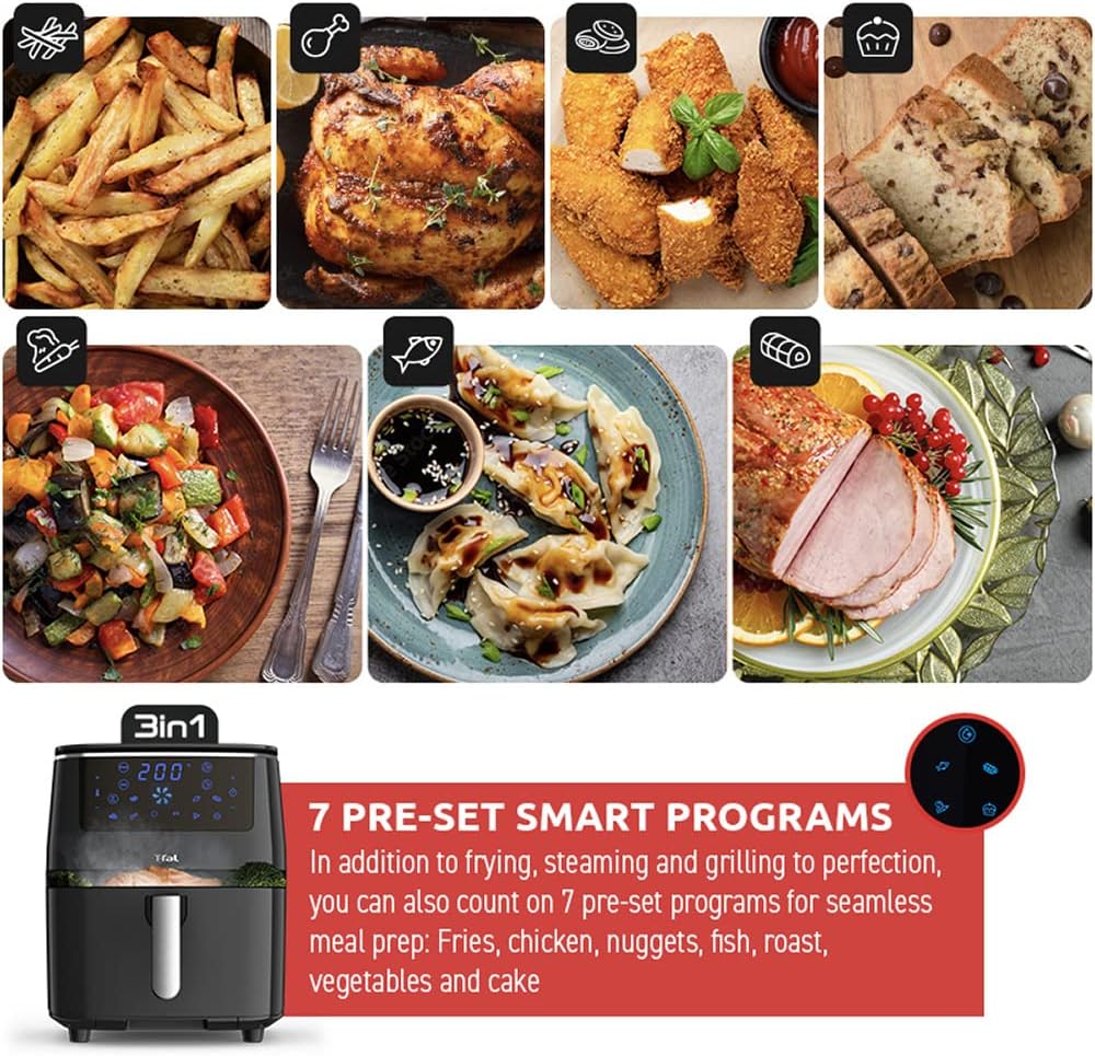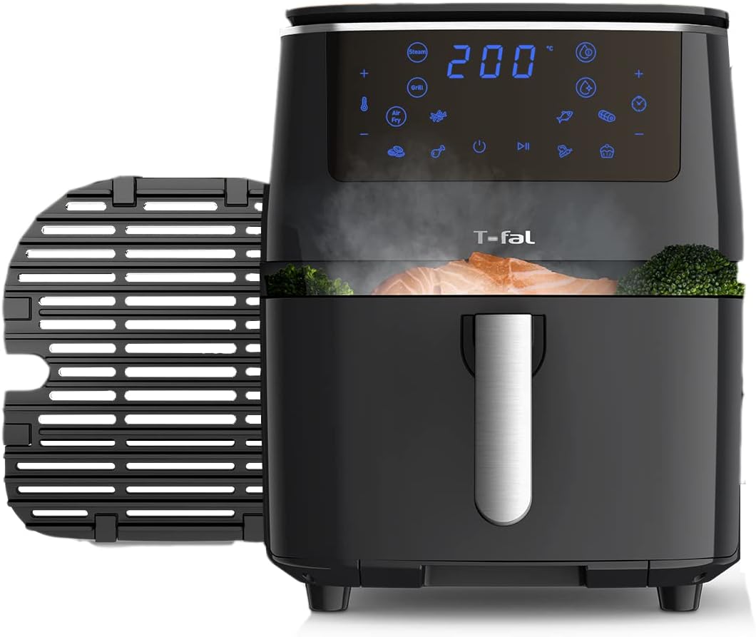 Tfal air fryer, Easy Fry Grill & Steam XXL Air Fryer comes fully equipped with Extra Crisp Technology, Innovative Steam Technology, 7 pre-set modes and a one-of-a-kind, die-cast aluminum grill plate to sizzle your food to perfection every time. Use 99% less added fat so your cooking packs a healthy punch, with preserved nutrients and vitamins, and loads of flavor. Think you can’t have it all? We beg to differ. #1 Trusted Air Fryer Brand among Canadians! Whether it’s an extra crispy plate of fries, a signature barbeque grill or a nutrient-packed assortment of steamed vegetables, your craving is this air fryer’s demand! Built with the ultimate versatility in mind