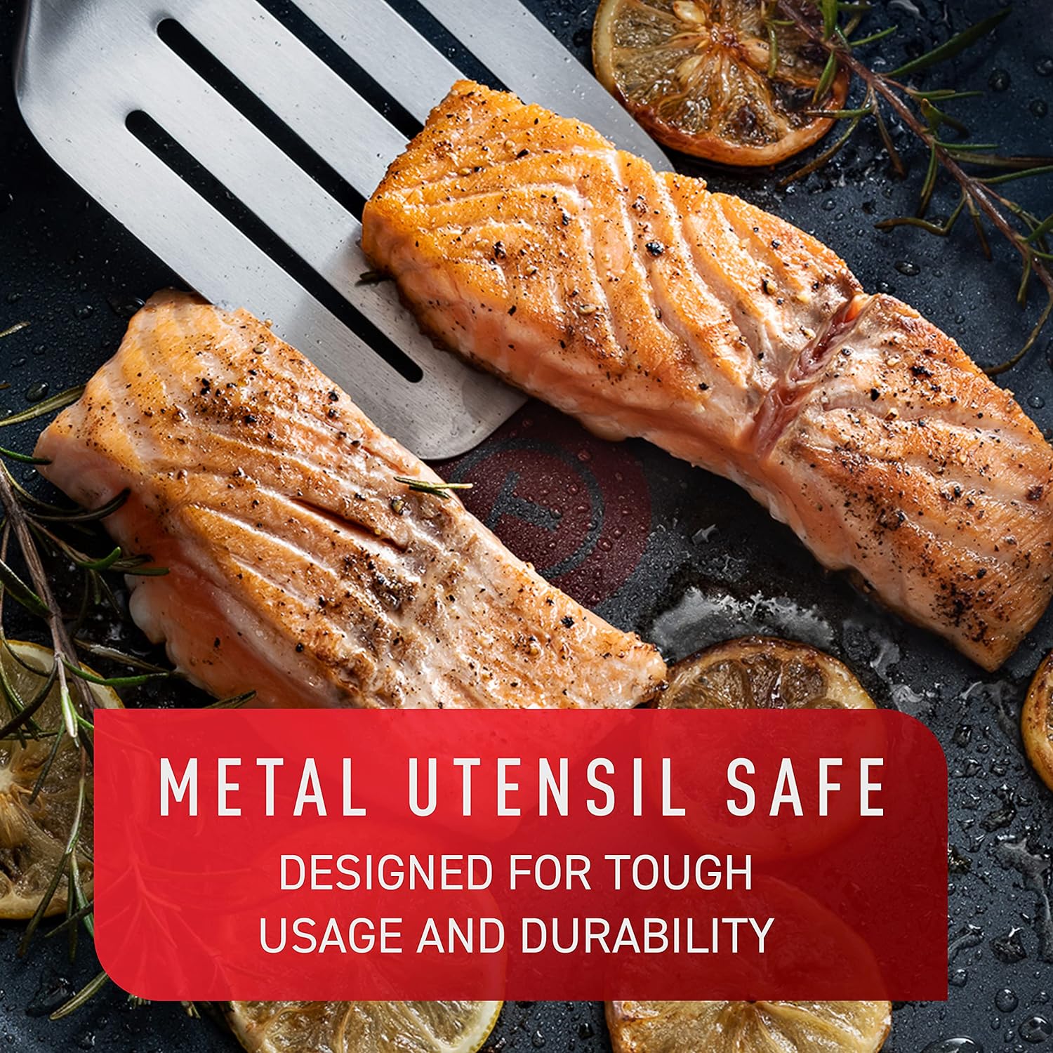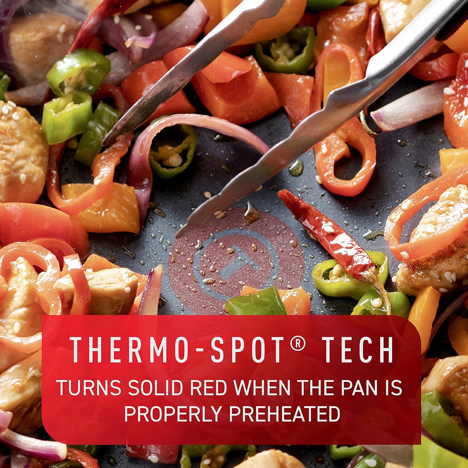 T-fal introduces Canada’s longest-lasting non-stick thanks to the unique 5-layer Platinum non-stick technology, which has outperformed all major non-stick competitors in external testing, making it Canada’s longest-lasting non-stick* for all your demanding use in the kitchen. The Platinum coating technology is 10x more resistant, equivalent to 12 years of intensive usage** without your cookware wearing out. As with all T-fal cookware, the Platinum range includes T-fal’s unique Thermo-Spot® Heat Indicator, which indicates precisely when your pan has reached the perfect cooking temperature and helps to prevent your pan from overheating, preserving the non-stick performance for a lifetime. Read more